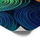 Colourful spiral patterns intertwine, creating a visually dynamic composition. The use of bright colours adds depth and vibrancy to the design.