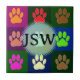 Multicolored Dog Paw Print Pattern Initials Ceramic Tile
