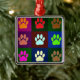 Multicolored Dog Paw Print Pattern Metal Ornament