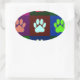Multicolored Dog Paw Print Pattern Oval Sticker