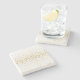 The coasters are gorgeous, a quality feel and heavy weight. They look like a precious archeological find. A rustic stone juxtaposed with a modern floral black and white print. I like the way the print goes slightly imperfect on the cut stone edges giving them a kind-of natural beauty.