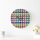 Multicolored Lines On Plaid Houndstooth Design Large Clock