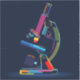 Abstract microscope biological, pharmaceutical magnifying instrument from multicolored paints Coloured drawing illustration of paints