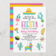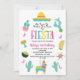 Colorful girl's fiesta themed birthday invitation featuring a sombrero, cactus, taco, pinata, maracas and more. This fiesta birthday invitation also features a multicolored heading and is ideal for a Mexican fiesta themed birthday party for a girl.