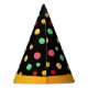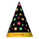 Party Time Multicolored polka dots on black background Party Hat. Party Time can be personalised.