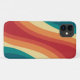 Multicolored retro style waves geometrical pattern illustration with orange, red, beige, blue and turquoise wavy stripes decoration on dark blue background