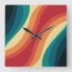 Multicolored retro style waves geometrical pattern illustration with orange, red, beige, blue and turquoise wavy stripes decoration on dark blue background