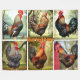 This design has beautiful roosters with brilliant plumage strutting their stuff.