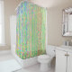Multicolored whimsical and colourful shower curtain. Shimmery and many coloured pattern.