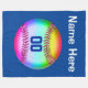 Cool Multicolored Softball Fleece Blanket PERSONALIZED with her NAME or Text and her JERSEY NUMBER or MONOGRAM typed into text boxes beneath "Edit this design template". Click "More" to see Both Text Boxes. For Softball Team Gifts, this blanket is available in the Small 30 x 40 inch and also the Medium 50 x 60 inch. Shown is the Largest Softball Blanket, 60 x 80 inch to keep you warm at the game. Great Softball Room Decor for Girls. Wonderful Softball Christmas Blanket. CALL Linda to make design and or COLOR Changes: 239-949-9090