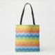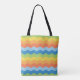 Yellow, orange, blue and green colours, a tote bag designed with a multicolored wave pattern. Customise the tote bag pattern size among other options.