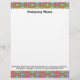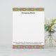 This brilliant multicolour honeycomb customisable letterhead has an abstract pattern with rows of pink blue and purple diamonds on it. Each row is separated by a row of dark green diamonds. Each of the dark green diamonds has a hole in the middle of it. The paper is white and there is bold black customisable text on it. The template allows you to type your name or company name at that top and all your contact details at the bottom. The patterns sits above the company name at the top and below the other text at the bottom. You also have the option to click on the "customise it" button and change the colour of the paper, experiment with different fonts and font colours and move the text, or add additional text. While this letterhead was designed for business use it could also be used at home for writting letters, invitations etc. With all the customisation available this letterhead is versatile enough to do whatever you want it to.