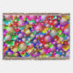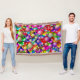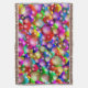 This unique, colorful digital art design, with multitudes of multicoloured hearts and bubbles,