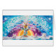 Children from different backgrounds working together to weave multicultural fabric around a tree growing through the seasons.
