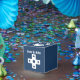 Give your guests, bridesmaids, groomsmen, or anyone else a special treat with these customisable favour boxes featuring a navy blue background with a white 8-bit hear on the top, d-pad on the front, and joystick on the back of the box. Each of these sides also features some sample text that you can customise for your own video game geek wedding or event.