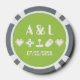 Give the guests, bridesmaids, groomsmen, or anyone else attending or helping with your geeky wedding or special event a fun treat with these customisable poker chips. One side of the poker chip features a white directional pad, or D-pad, on a pastel peridot green background. The other side has a sample set of initials and date separated by a pattern of video game related icons, including a D-pad, 8-bit heart, joystick, and computer mouse. The sample text can be customised with your own details or a special message of your choice to create a unique and personal token to commemorate your big day. This design will match any product from the Multiplayer Mode in Peridot line so that you can make your gaming themed wedding or special event as coordinated as you like.