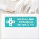 A bright turquoise return address label is decorated with a white D-pad on the left and sample text on the right for customising to make it your own.