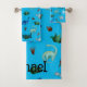 Multiple Dinosaur Species in Turquoise Background Bath Towel Set