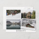 A collage postcard with four photographs from Germany, like Bastei Bridge in Saxon Switzerland, a traditional chalet in Bavaria, Rottach-Egern at the lake and husky racing in the mountains. One photo is a bit twisted to create the illusion of a loose laying photo. It comes with the text 'Germany'.