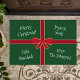 Greet your guests with this beautiful custom Christmas holiday door mat. The mat is dark green and features Christmas greetings in English, French, and Spanish: Merry Christmas, Joyeux Noel, and Feliz Navidad. There is also a place to personalise with your family last name. All text is editable, so you may choose other languages or greetings, per your preference.