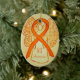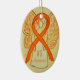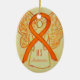 Multiple Sclerosis uses an orange awareness ribbon. The awareness ribbon angel pendant ornament features the art of an orange awareness guardian angel painting. The message words note "MS Awareness". Add or change to your own custom words for a personalised awareness angel cause custom art gift ornaments! You can also remove the text for an art only awareness ribbon angel art ornament charm. The orange awareness angel ribbon painting art ornament pendants can be customised with personalised messages to make great awareness ribbon cause art ornaments for fundraisers, awareness Christmas or holiday gifts, or other special events or occasions.