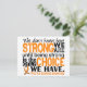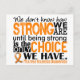 "We Don't Know How Strong We Are Until Being Strong Is The Only Choice We Have" (author unknown). Share this empowering sentiment while advocating Multiple Sclerosis awareness with our line of inspiring t-shirts, apparel, and merchandise featuring a variety of text fonts and orange Multiple Sclerosis support ribbon. Perfect gift idea for any Multiple Sclerosis warrior or survivor!