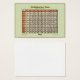 An orange and beige multiplication table on a chubby business card format so you can easily fit it in your pocket, wallet, or inside your math notebook or binder. This table will help all learners whether they are kids or adults working on their math skills. This design is available on other products such as mousepads, mugs, buttons, coasters, photo cards and more so you can choose the one that works best for you or choose several formats so you can learn wherever you are. This card comes in packs of 100 which makes it suitable for teachers to give to their students or for large families where many are learning or referencing their math skills at one time. Or parents doing home schooling might purchase one pack for several parents to share the cost. © Angel Honey, 2011
