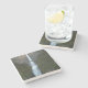 The coasters are gorgeous, a quality feel and heavy weight. They look like a precious archeological find. A rustic stone juxtaposed with a modern floral black and white print. I like the way the print goes slightly imperfect on the cut stone edges giving them a kind-of natural beauty.