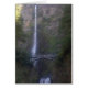 Multnomah Falls in Oregon. An arch bridge overlooking a tall thin waterfall on a greeting card.