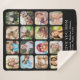 Create a personalised keepsake sherpa blanket for your mum featuring 16 rounded square frames holding photos of her children, family, pets, travels or other special memories and two lines of customisable text, such as "We Love You Mum" and the names of her family members, in elegant white typography on a black background.