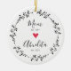 Simply perfect Christmas ornament featuring a black and white leaf line wreath drawing & heart with year est. as a Mum and year est. as a Abuelita. A Wonder gift sure to be treasured for many years to come.