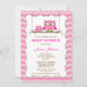 This modern invitation is perfect to celebrate a baby shower with an owl theme. It features a mum owl and a baby owl on a branch held by two strings. An ornate frame and a chevron pattern background add a chic and trendy look. The pink colour palette makes it ideal for a mum-to-be expecting a baby girl. Add your own wording.