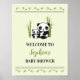 Baby Shower welcome poster featuring cute characters of a mum and baby Panda bear seating and smiling, with bamboo plants around them. This gender-neutral invitation is cute and sweet, perfect for a mum-to-be.