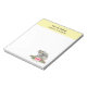 A notepad with an adorable watercolor design. Koala bear mum and baby. Baby is riding on momma's back. Standing on a tree branch. A hibiscus flower bouquet underneath them. Banana yellow background.