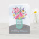 Mum Birthday Blessings Jar Vase with Flowers Card