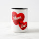 This coffee mug design features the massage "mum-dad" into hearts and show feelings for mum-dad love.
