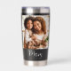 Being a mum is one of the most important jobs in the world. Show your favourite mum that you care with this custom photo, stainless steel insulated thermal tumbler. Simple white script calligraphy and sans serif typography, along with your personalised photo, overlay a black background. Personalise with the photo of your choice and the mum “established” year date when your first child was born. Add additional years for each child. And switch out “mum”, if desired, for however you call your mum or mum.
