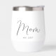 Celebrate the mum in your life with this elegant thermal wine tumbler. The sleek white design features black script text that says Mum with customisable text below to include the year she became a mum. This personalised touch makes it a thoughtful gift for Mother’s Day, baby showers, birthdays, or just because.