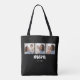 Celebrate motherhood in style with this tote bag featuring 3 photos, the word MOM in modern script typography and the year she became a mother. Add your custom "Est" established year date when her first child was born. Add additional years for each child. Choose your own text colour, font style and background colour to create a design that reflects her personality, whether she prefers a minimalist look or a pop of colour. Perfect for Mother’s Day, her birthday, a holiday or just because as a reminder of how much she's loved. ASSISTANCE: For help with design modification or transferring the design to another product, contact the designer BEFORE ORDERING via the Zazzle Chat MESSAGE tab or email makeitaboutyoustore@gmail.com.
