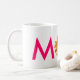 Mum stylish mug which is fully customisable. The mug shows the words Mum with an image of a gerber daisy. Ideal as a Mother's Day Gift
