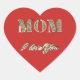 Mum I Love You Gold Sparkles Typography Heart Sticker