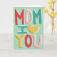 A mother's Day card for your one and only mum, this card features hand illustrated and lettered elements in pretty teal, red, pinking yellow on a pale mint background. The message reads "Mum, I Heart You" on the front with easy to personalise text on the inside to create your own special message.