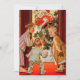 A funny vintage Christmas invitation featuring three curious kids watching mum kissing Santa Claus.