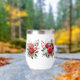This beautiful wine tumbler features the word 'MOM' placed vertically with the words 'mum life is the best life' down the middle. An elegant bouquet of red roses flanks both sides.