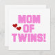 Mum of Twins keepsake boxes, tiles, ornaments, mugs, buttons, cards, mousepads, and other Mum of Twins items with pink text and two red hearts, perfect for the mum of twin girls!