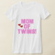 Mum of Twins T-shirts, mugs, buttons, cards, mousepads, and other Mum of Twins items with pink text and two red hearts, perfect for the mum of twin girls!