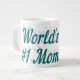 Mug with World's #1 Mum with your own photo and 3D blue green text. Mug available in several styles and colours.
