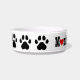 "Mum’s Favourite Child" Typography with a red heart and cute paw prints, funny pet dog food ceramic bowl.