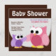 Cute Owl Baby Shower Invitations featuring a pink mummy owl holding the wing of her little purple baby girl owl.
