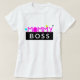 This modern simple but effective design says Mummy Boss in purple and black text. You and your child can definitely make a statement wearing this design.